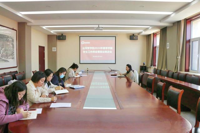2024年4月16日下午,云冈学学院在文德楼四层会议室召开2024年春季学期学生工作例会暨就业推进会,会议由学院党委副书记杨娜主持,全体专、兼职辅导员参加会议。