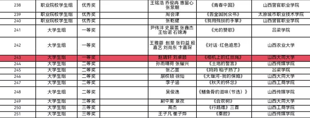 “云章诵尽千年韵,百舸争流文脉长”。近日,山西省教育厅对第七届“诵读中国”中华经典诵写讲大赛山西赛区拟推荐入围国赛名单予以公示。我院23级历史二班赵靖轩和24级历史二班刘卓颐,凭借朗诵作品《相机上的红丝绳》荣获省级一等奖,并成功入围全国总决赛,充分体现了我院学子在经典文化传承中的深厚积淀与持续奋进的精神风貌。