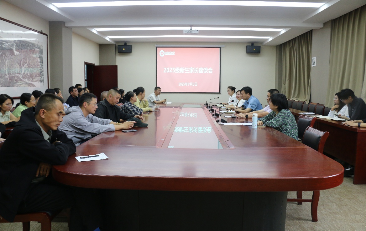 勠力同心,共育英才。为凝聚家校育人合力,帮助新生平稳适应大学节奏。9月5日下午,云冈学学院在文德楼四层会议室召开2025级新生家长座谈会。学院领导班子、2025级新生辅导员及部分2025级新生家长参加会议。会议由学院党委副书记杨娜主持。