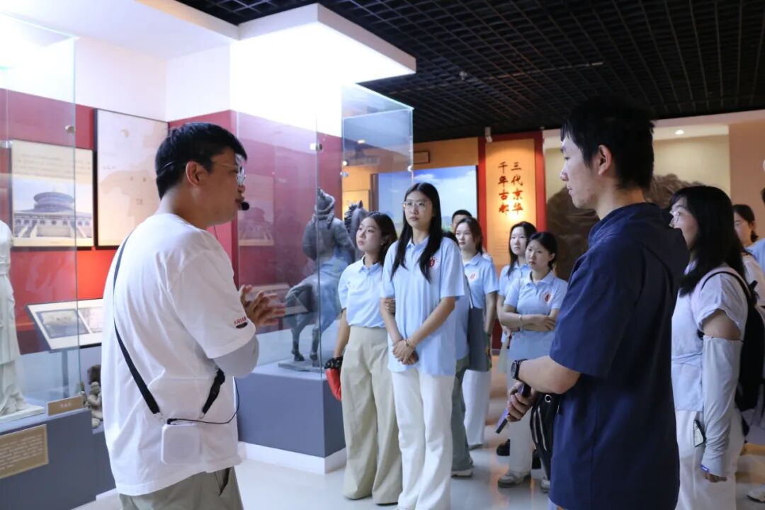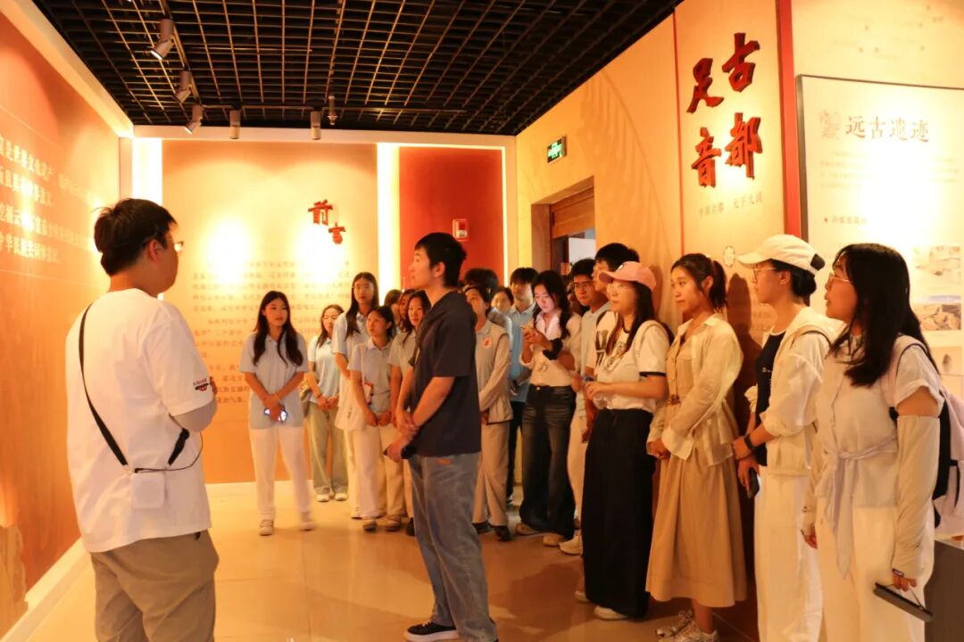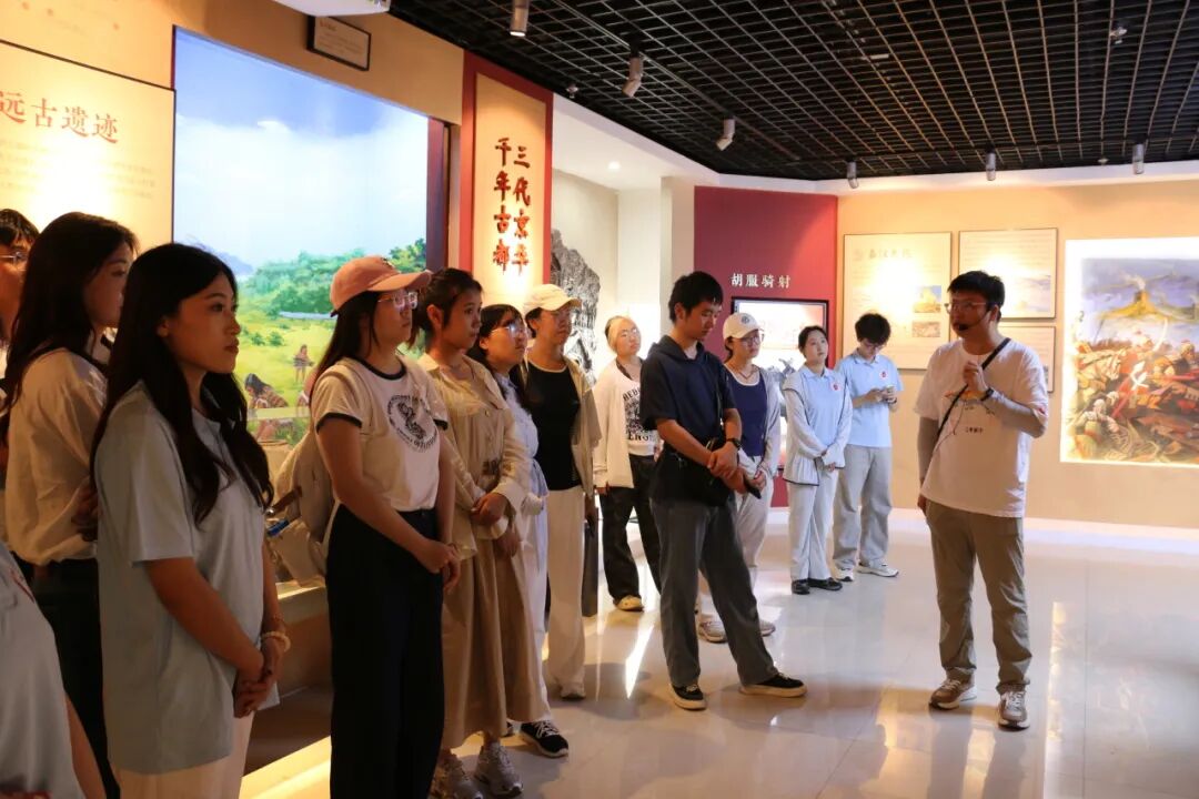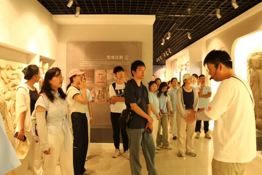 在云冈文化陈列馆中,云冈学学院梁啸老师通过对“古都足音”“云冈真容”“学术英华”三个展厅的讲解,向同学们展示了大同的历史底蕴、云冈文化的源流发展与艺术特色和我校云冈学建设成果。同学们驻足聆听,深刻感受在古都大同这片土地上中华民族交往、交流、交融的历史和云冈石窟造像的艺术成就与文化价值