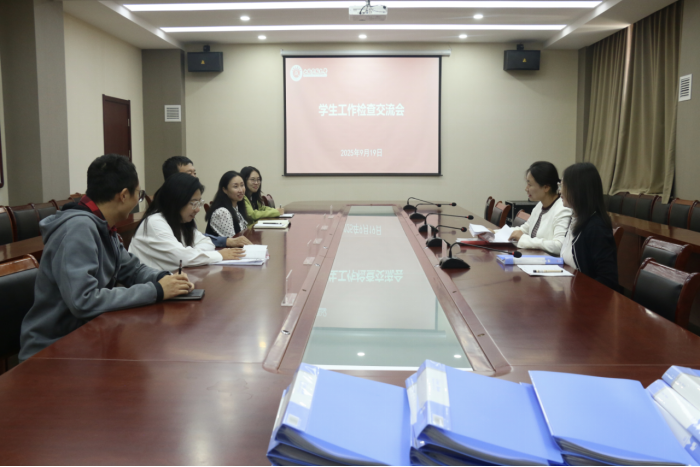 2025年9月19日下午,校学生工作部副部长张冠华一行来我院检查工作,学院党委书记解廷月,学院党委副书记杨娜,学院专职辅导员参加会议。