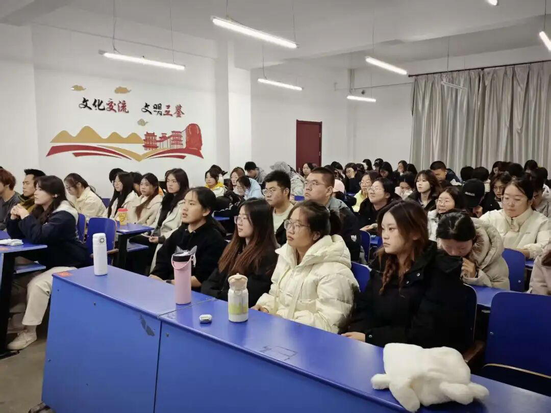 接着,主讲人围绕“学思践悟启新程”展开讲解,从“学、思、践、悟”四个部分进行讲解。在“思:深化认知找准坐标”部分,她强调要结合社会实际,将理论与现实问题结合,通过调研实践深化认知、提升思辨能力,同时找准个人定位,将个人理想融入国家发展大局。在“践:投身强国伟业一线”部分,她从校园实践、社会实践、服务社会发展三个层面,鼓励青年积极参与学风建设、科技创新、基层调研、公益创业等活动,在实践中提升能力、贡献力量。在“悟:升华境界规划长远”部分,她讲到要从实践中总结经验,升华思想境界,坚定“四个自信”,明确奋斗方向,实现人生价值。