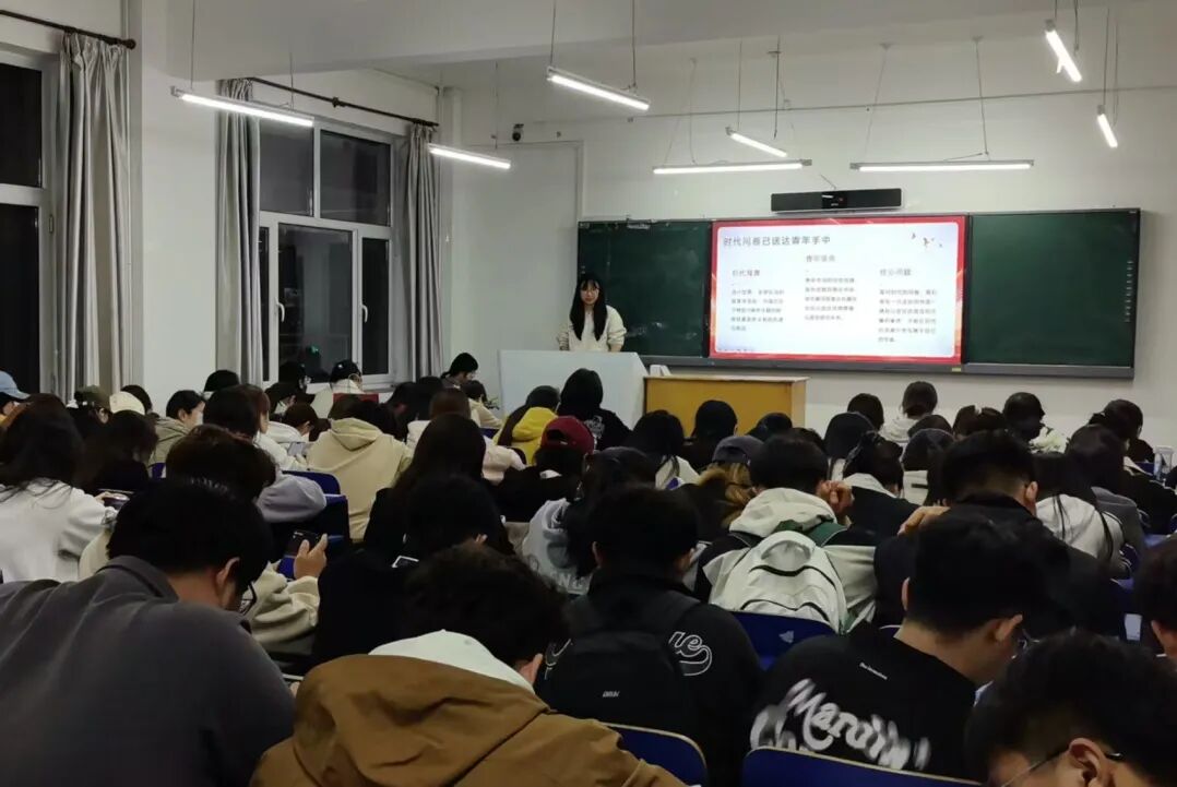 青春与信念同频,理想与奋斗共振。为深入引领团员青年坚定理想信念、明确奋斗方向,共青团山西大同大学云冈学学院委员会于10月11日在文德楼开展“信念燃青春,奋进向未来”的主题团课。本次团课由马克思主义学院任柳静同学担任主讲,2024级历史一班与2024级历史二班全体同学参与学习。