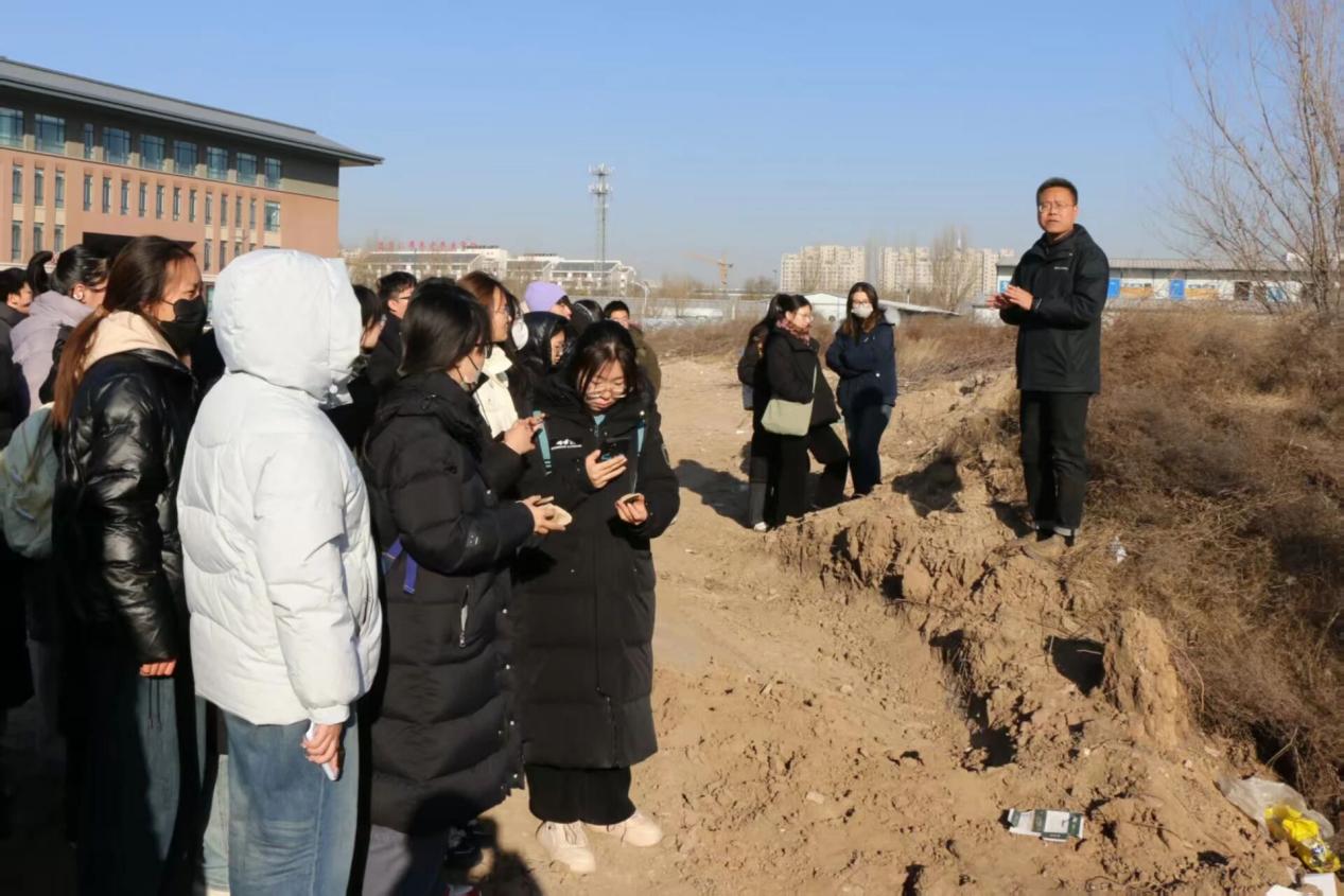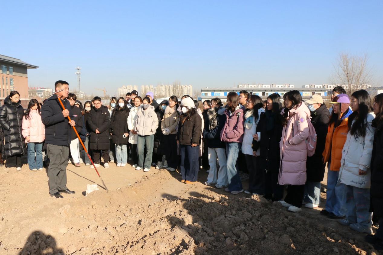参观结束后,公司技术人员在校园内现场指导文物保护技术专业学生开展田野考古实践教学。现场教学中,工作人员结合一线工作经验,通过讲解、演示考古探铲使用、无人机航拍及RTK测绘等考古技术,系统、全面地介绍了田野考古的基本流程与方法。学生们积极参与实操实践,在亲手操作中深化了对考古技术的认识与理解。