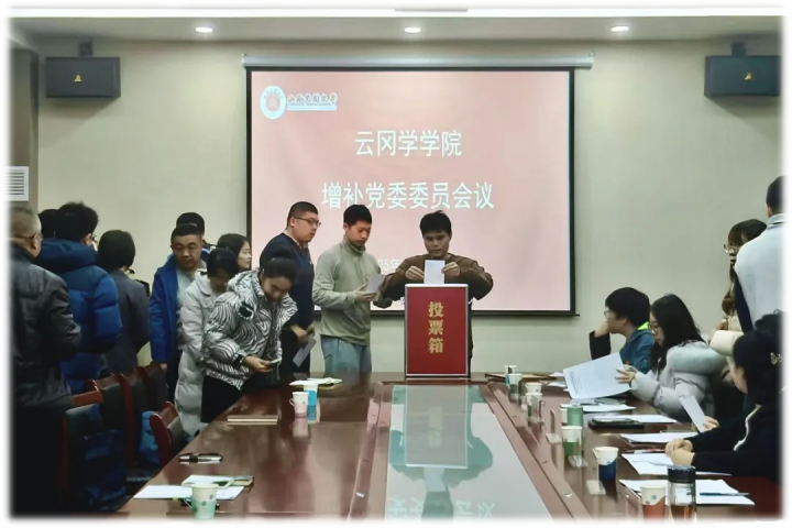 凝心聚力强党建,砥砺奋进谱新篇。为进一步夯实党组织战斗堡垒,根据《中国共产党章程》《中国共产党基层组织选举工作条例》相关规定,经校党委组织部批复同意,2025年12月18日下午3时,云冈学学院党委增补委员会议在文德楼四层会议室召开。学院全体党员参加会议,会议由学院党委副书记杨娜主持。