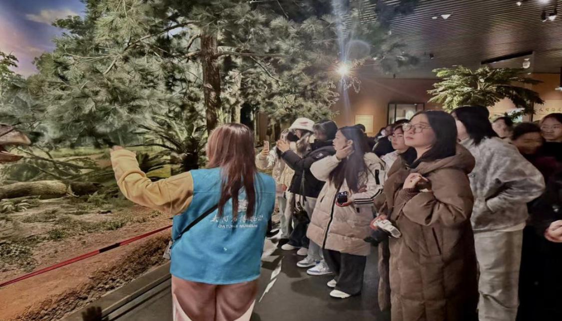 活动现场,讲解员以生动详实的讲解为同学们铺展大同的历史长卷。从共享大厅的整体概览,到大同恐龙展厅的远古印记,再到沧桑代地、魏都平城、辽金西京及明清重镇等主题展区的逐次探访,文物与史料以时间为轴串联起城市的千年变迁。同学们驻足凝视珍贵文物,轻声交流研学感悟,在文明遗存中,真切体会大同作为多民族文化交融枢纽的独特气质。